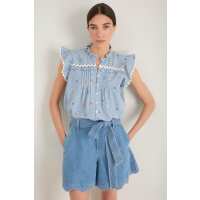 Daisy Frill Top - Blue Stripe Embroidered 0