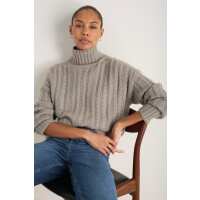 Liana Chunky Funnel Neck Jumper - Taupe Cable L