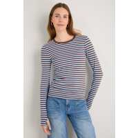 Marnie Long Sleeve Jersey Top - Chocolate/Sky Blue Stripe 0