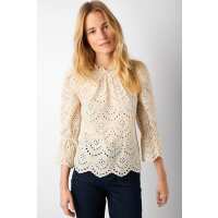 Helena High Neck Broderie Top - Ecru 0