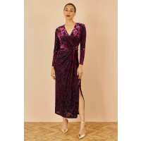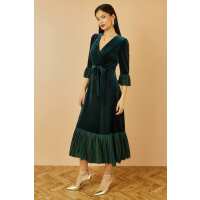 Yumi Green Velvet Wrap Midi Dress With Contrast Hemline Green / 14