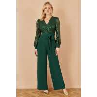 Yumi Green Sequin Wrap Over Jumpsuit Green / 12