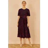 Yumi Burgundy Velour Spot Midi Skater Dress Burgundy / 16