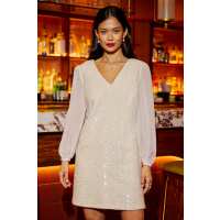 Yumi White Sequin Tunic With Tie Back And Sheer Sleeves White / 14