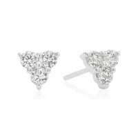 Sterling Silver Round Cut White Cubic Zirconia Triangle Stud Earrings