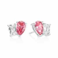 KISS Sterling Silver Pear & Emerald Cut Pink & White Cubic Zirconia Stud Earrings